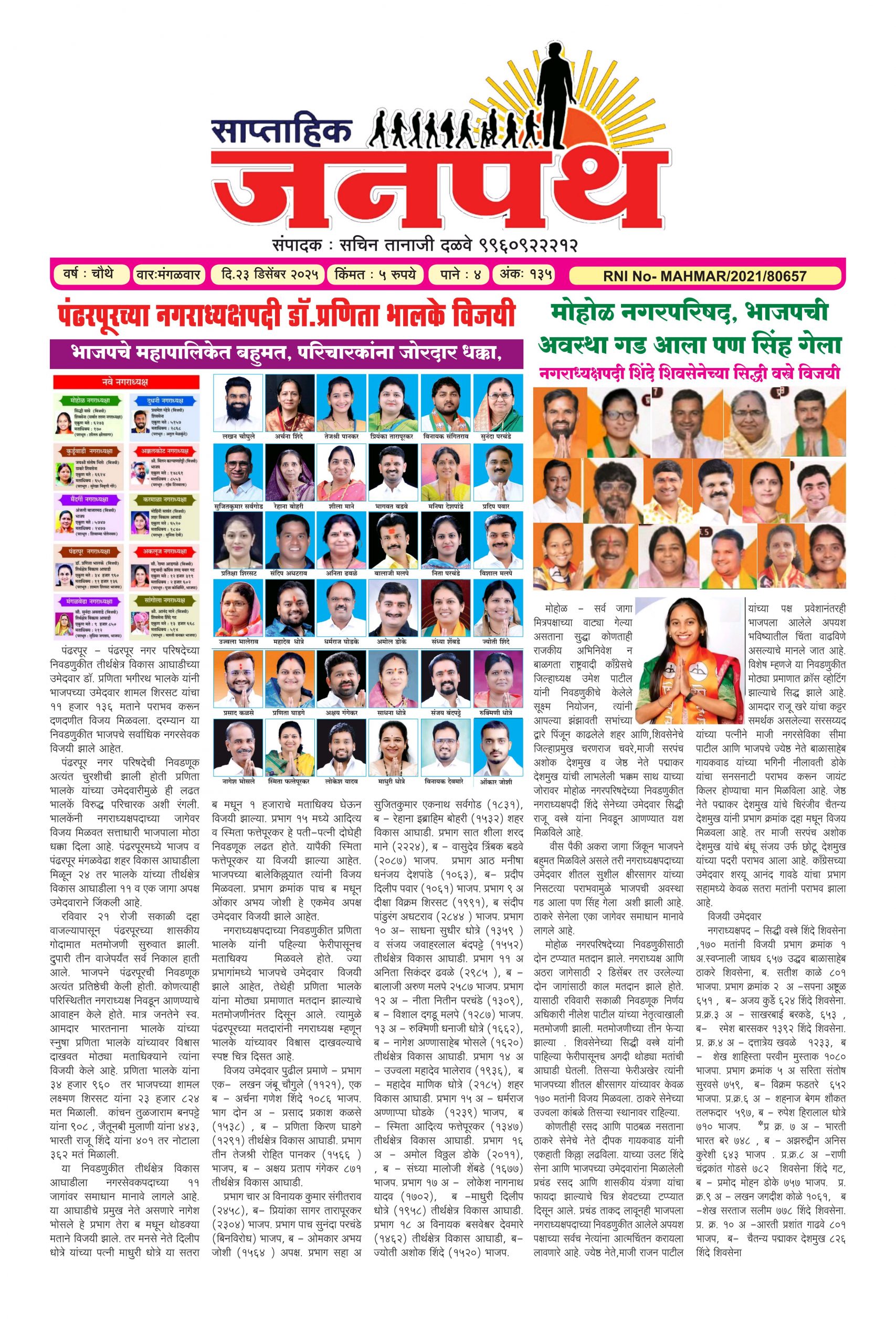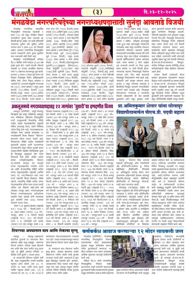सोलापूर जनपथ पेपर नगरपरिषद निकाल2025 admin December 24, 2025December 24, 2025 0 Comments नगरपरिषद निकाल सर्व उमेदवार सोलापूर जिल्हा नगराध्यक्ष Spread the love