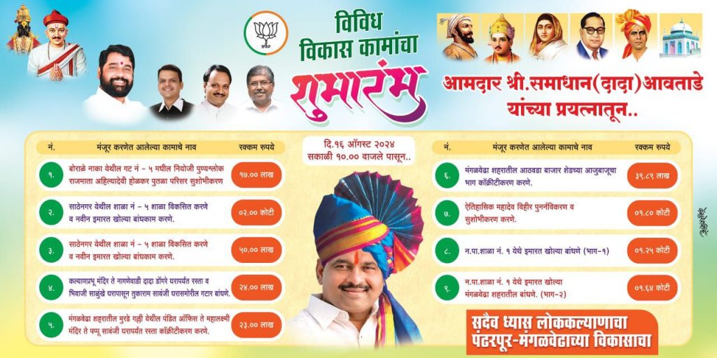 मतदारसंघांमध्ये वाड्या- वस्त्यावर जाणारे अनेक रस्ते हे निधीपासून वंचित राहत असून केवळ त्याची शासन दप्तरी नोंद नसल्यामुळे त्यावर निधी टाकणे मुश्किल होत आहे, तरी 15 ऑगस्ट च्या ग्रामसभेमध्ये प्रत्येक ग्रामपंचायतीने नॉन प्लान रस्ते प्लान मध्ये घेण्यासाठी शेतकऱ्यांना मार्गदर्शन करून त्यांच्याकडून संमती घेऊन ग्रामपंचायत दप्तरी नोंदणी करावी व तसा प्रस्ताव बांधकाम विभागाकडे सादर करावा त्या रस्त्यांना निधी देणे सोयीस्कर होईल असे आवाहन आमदार समाधान आवताडे यांनी ग्रामस्थांना केले आहेत.