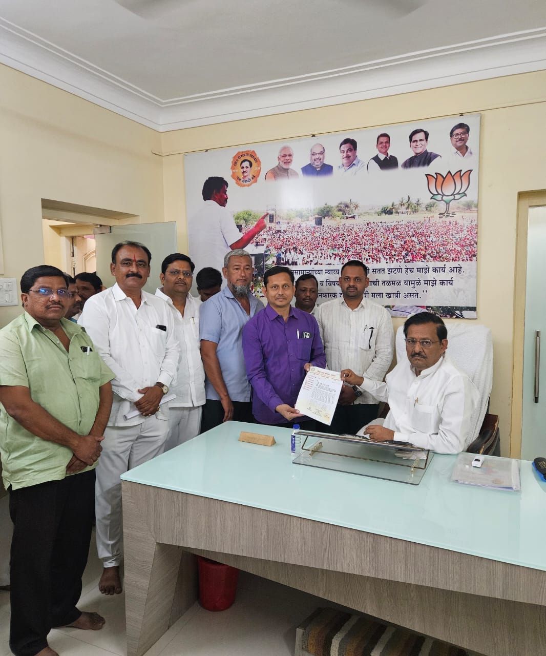 या शिष्टमंडळामध्ये चेंबर ऑफ कॉमर्सचे अध्यक्ष मा. प्रवीण डोके, भाजपा जिल्हा उपाध्यक्ष तथा नगरसेवक मा. सुशील क्षीरसागर, जिल्हा उपाध्यक्ष मा. सतीश काळे, मा.मुजीब मुजावर, मा.आकाश फाटे, मा.उमर शेख, मा.सागर लेंगरे, मा.बाळासाहेब क्षीरसागर, मा.अजय कुर्डे,मा.आबासाहेब जाधव, मा. मन्सूर इनामदार आदि उपस्थित होते.