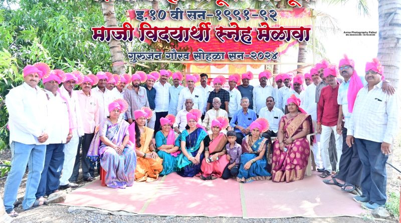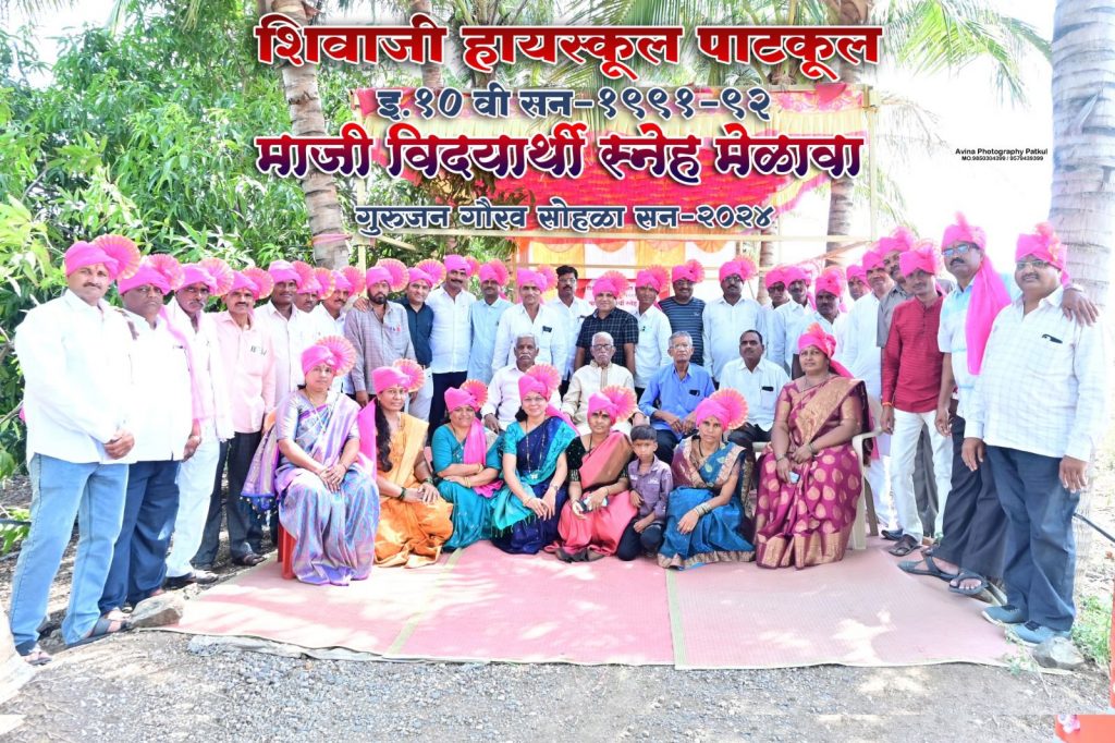 पाटकूल, तालुका-मोहोळ येथील शिवाजी प्रशालेच्या सन1991-92 दहावीच्या बॅचच्या विद्यार्थ्यांचा स्नेह मेळावा आर्या रीट्रीट, पोखरापूर येथे दिनांक 2 जून रोजी अत्यंत खेळीमेळीच्या वातावरणात पार पडला. याप्रसंगी या विद्यार्थ्यांना शिकवणारे गुरुवर्य प्रकाश कुलकर्णी ,भारत सवणे शिक्षकेतर कर्मचारी नागनाथ देशमुख व नाना पांढरे यांची विशेष उपस्थिती लाभली. याप्रसंगी सावित्रीबाई फुले यांचे प्रतिमा पूजन करून ,गुरुजनांना विठ्ठल मूर्ती देऊन सत्कार करण्यात आला. तसेच शाळेविषयी कृतज्ञता व्यक्त करण्यासाठी दहावीच्या गरीब होतकरू विद्यार्थ्यांसाठी क्रमिक पुस्तकांचे संच मुख्याध्यापक श्री दत्तात्रय गावडे यांना सुपूर्द करण्यात आले. याप्रसंगी आरती काटीकर, महादेवी ढोले, जयश्री ऐवळे या विद्यार्थिनींनी आपल्या मनोगतातून शालेय जीवनातील आठवणींना उजाळा दिला .कार्यक्रमाचे सूत्रसंचालन भाऊसाहेब जाधव यांनी केले तर आभार हरी शेटे यांनी मानले .या संमेलनासाठी या बॅचचे डॉक्टर राजकुमार पवार, ग्रामविकास अधिकारी प्रदीप कुलकर्णी, संगणक अभियंता पुरुषोत्तम परदेशी ,प्रसिद्ध शेतकरी सतीश गोडाळे, लक्ष्मण वसेकर, यांच्यासह विविध क्षेत्रात यशस्वी कामगिरी बजावणारे 35 जण उपस्थित होते. सर्वांनी सुग्रास भोजनाचा आस्वाद घेतला, गप्पागोष्टी केल्या.