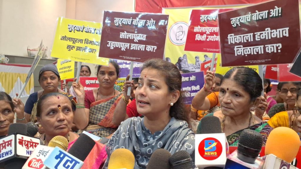 प्रणिती पुढे म्हणाल्या, सोलापूर शहराला ८ दिवसाआड पाणीपुरवठा होत आहे. पाण्याचे नियोजन नाही. युवकांना रोजगार मिळत नाहीये. महागाई प्रचंड वाढली आहे. याचा सर्वाधिक त्रास हा महिलांना होत आहे. असे अनेक गंभीर प्रश्न असताना भाजप धार्मिक जातीजातीत तेढ निर्माण करण्याचा प्रयत्न करत आहे. तुम्ही कामाचं बोला, तुम्ही विकासाच्या मुद्याचे बोला, असेही प्रणिती म्हणाल्या.