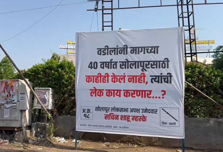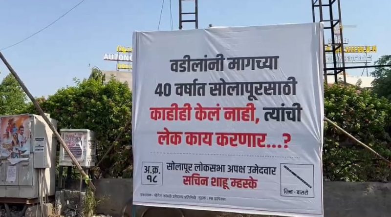 ‘वडिलांनी मागच्या ४० वर्षांत सोलापूरसाठी काहीही केलं नाही. त्यांची लेक काय करणार ?’ असा मजकूर असलेले बॅनर शहरात झळकत आहेत. सोलापूर लोकसभा निवडणुकीमधील अपक्ष उमेदवार सचिन मस्के यांनी शहरात हे बॅनर लावले आहेत.