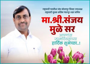 सोलापूर माननीय श्री admin July 4, 2024July 4, 2024 0 Comments मा.श्री. संजय मुळे सर यांना वाढदिवसाच्या हार्दिक हार्दिक शुभेच्छा Spread the love