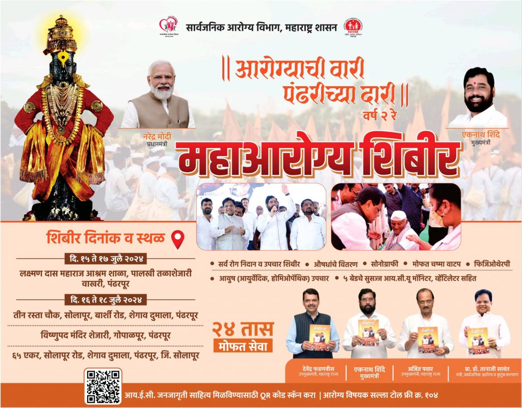 सोलापूर सार्वजनिक आरोग्य विभाग महाराष्ट्र शासन आरोग्याची वारी पंढरीच्या दारी महा आरोग्य शिबिर 24 तास सेवा उपलब्ध admin July 16, 2024 0 Comments सार्वजनिक आरोग्य विभाग महाराष्ट्र शासन आरोग्याची वारी पंढरीच्या दारी महा आरोग्य शिबिर 24 तास सेवा उपलब्ध Spread the love